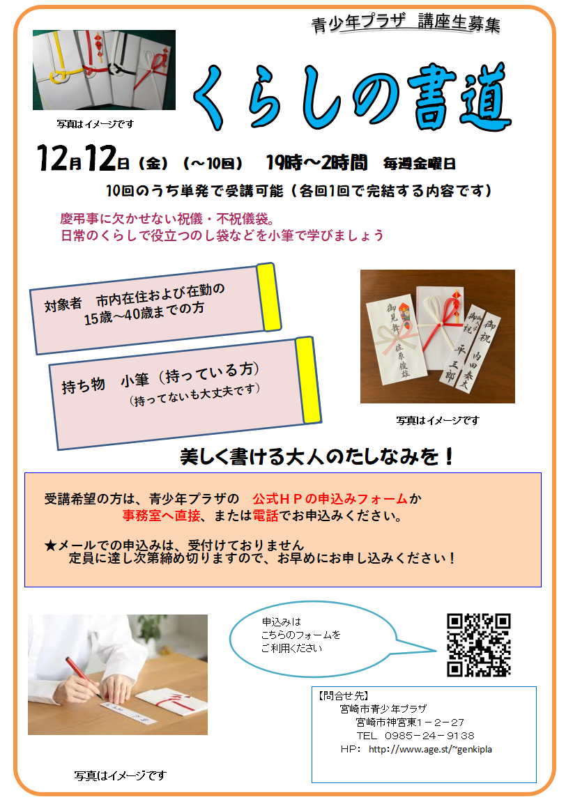 日常のくらしで役立つのし袋などを小筆で学びませんか