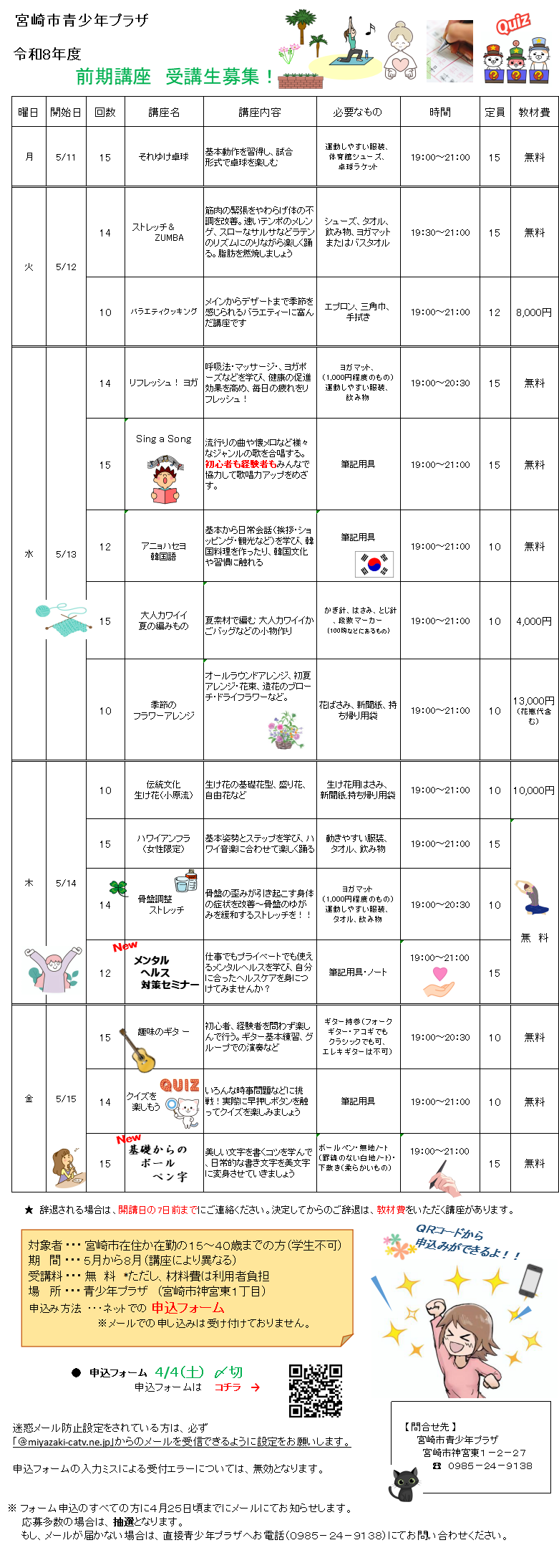★★令和8年度 前期講座 受講生募集のお知らせ★★